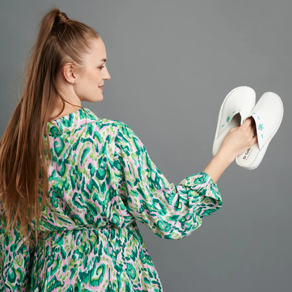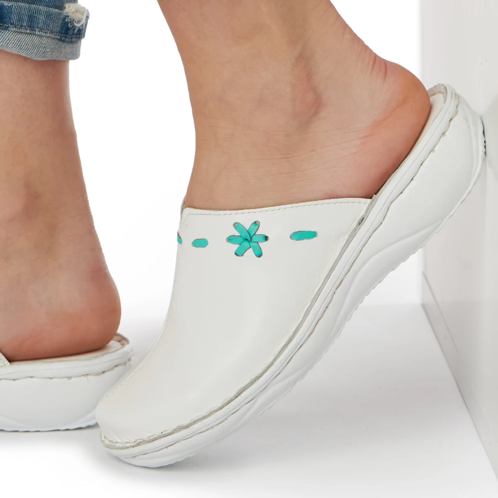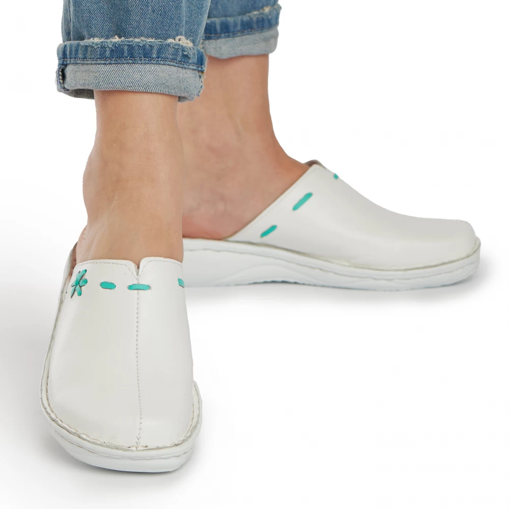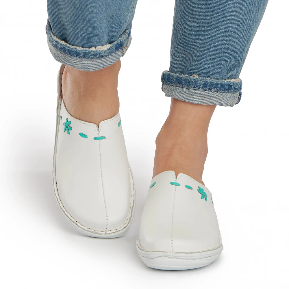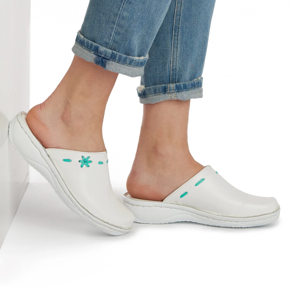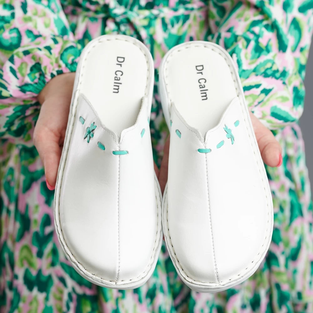 Dr. Calm Saboti piele naturala 7200 alb-turcoaz